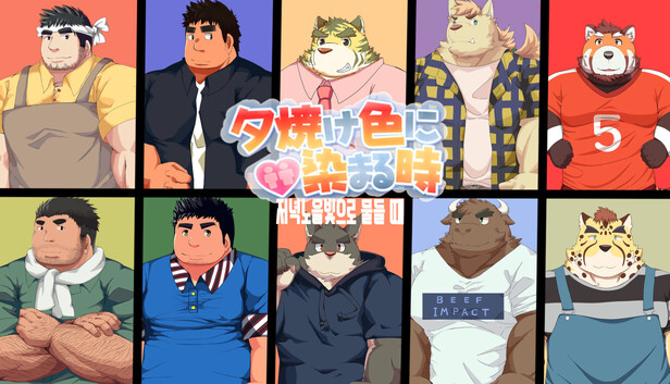 "저녁노을빛으로 물들 때"은 2034년, 인류와 다른 종족이 공존하는 지구를 배경으로, 수인 주인공 허버트의 연애를 그린 노벨 게임입니다. 학원 생활을 하면서 9명의 공략 캐릭터들과 교류하기 위해 행동하게 됩니다.