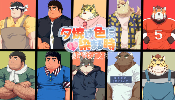 《被晚霞染红之时》是一款以2034年人類與其他種族共生的地球為舞台,描繪獸人主角哈伯特戀愛故事的視覺小說遊戲。 玩家將一邊體驗學園生活,一邊透過行動與九位可攻略角色進行交流。