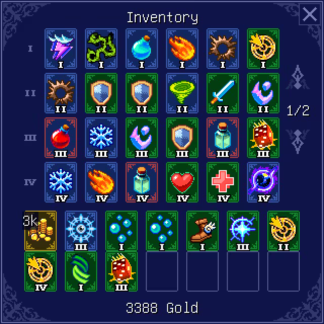 • Note the I, II, III, IV besides the equipment slots on the inventory