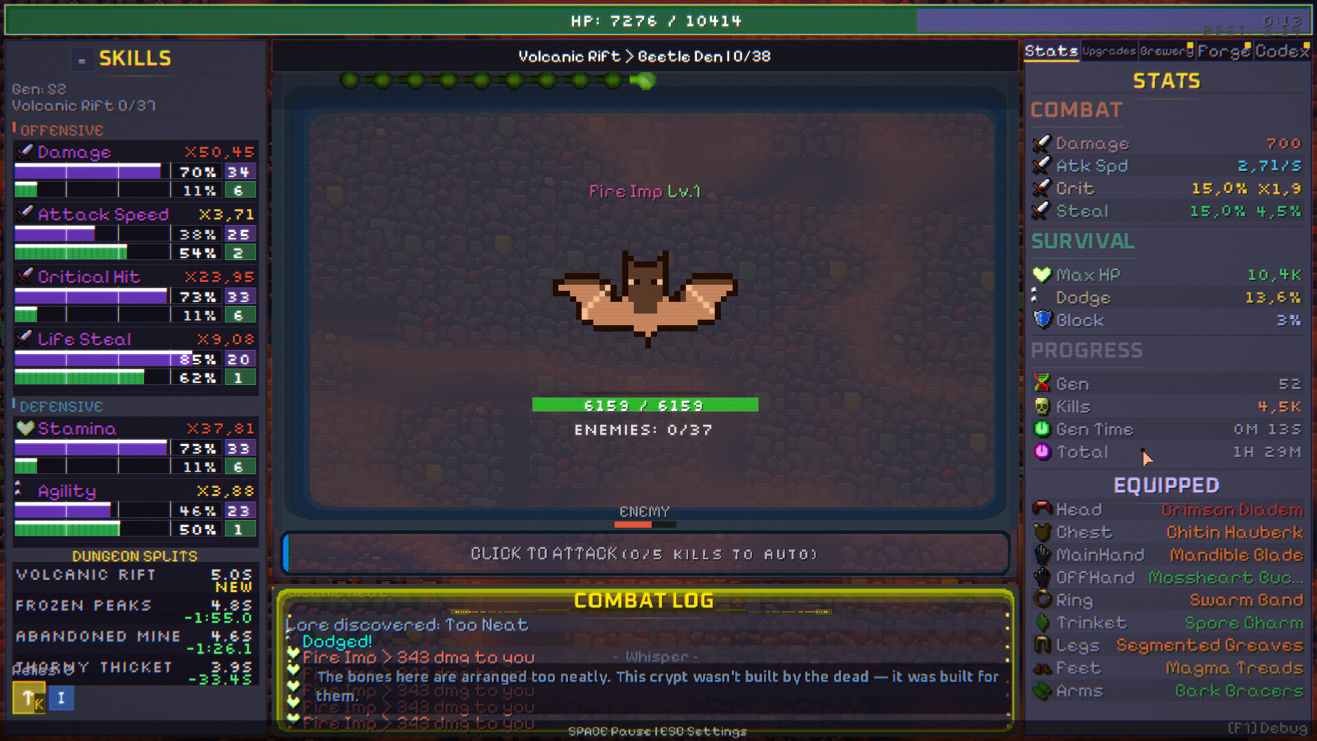 > Die. Inherit. Evolve. Fight through dungeons, craft gear, brew potions, and collect relics — then die, pass your DNA to the next generation, and push deeper. Something is watching. Every death makes your bloodline stronger — but who benefits? An idle incremental RPG with a dark secret.