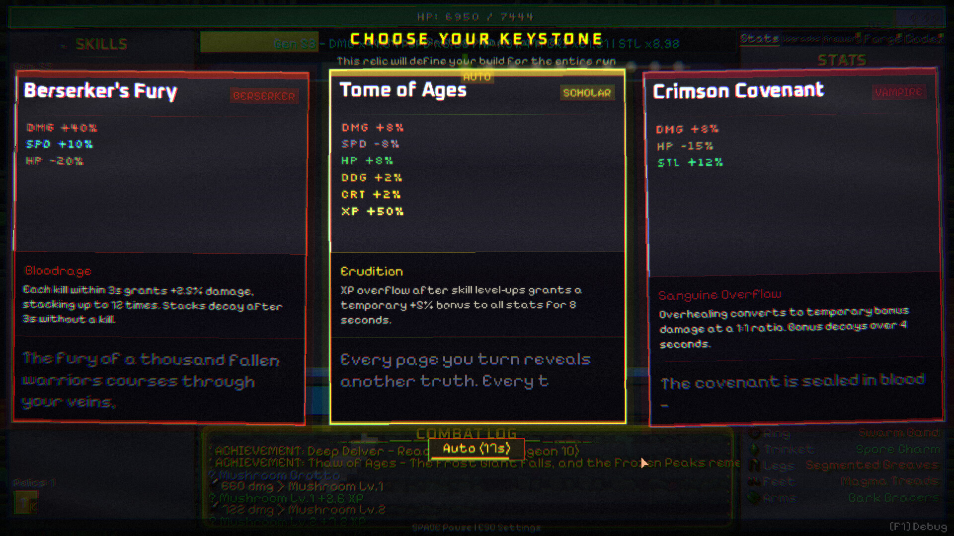 Forge equipment across 9 gear slots using loot dropped by enemies and bosses. Discover set bonuses, creature-type affinities, and archetype advantages. Some gear demands a price — trade-offs that force hard choices between raw power and survivability.