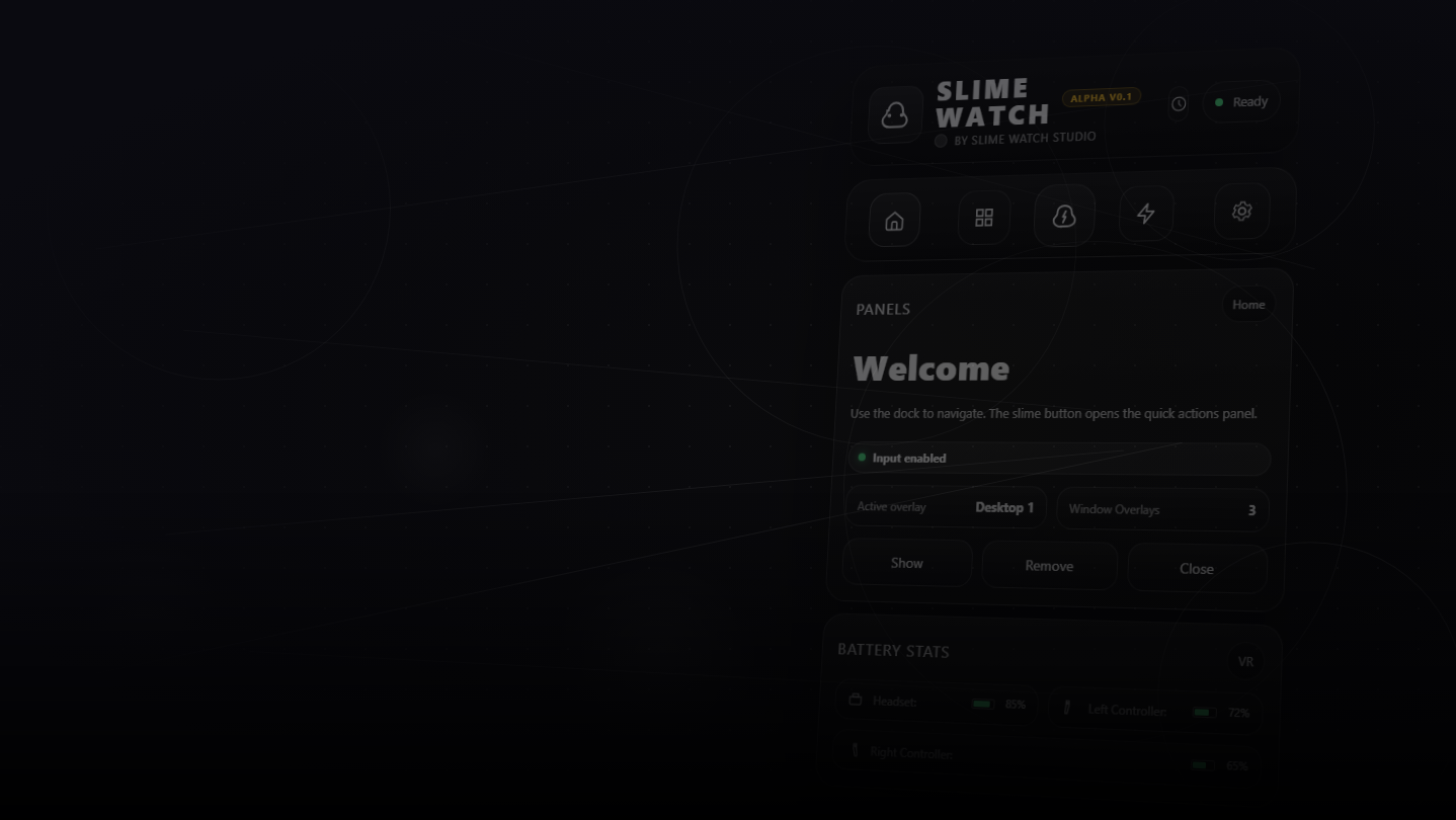 SLIME WATCH is an advanced overlay utility for [ SteamVR (OpenVR) ] that bridges the gap between your PC and your VR space.