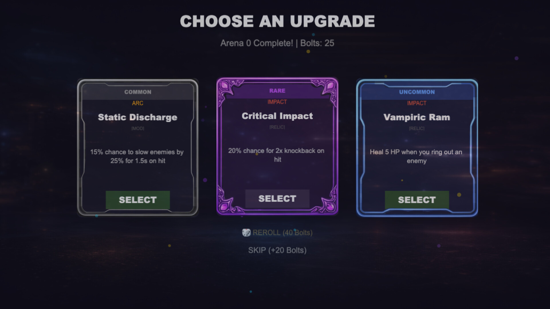 - Different relics with 3 upgrade levels each