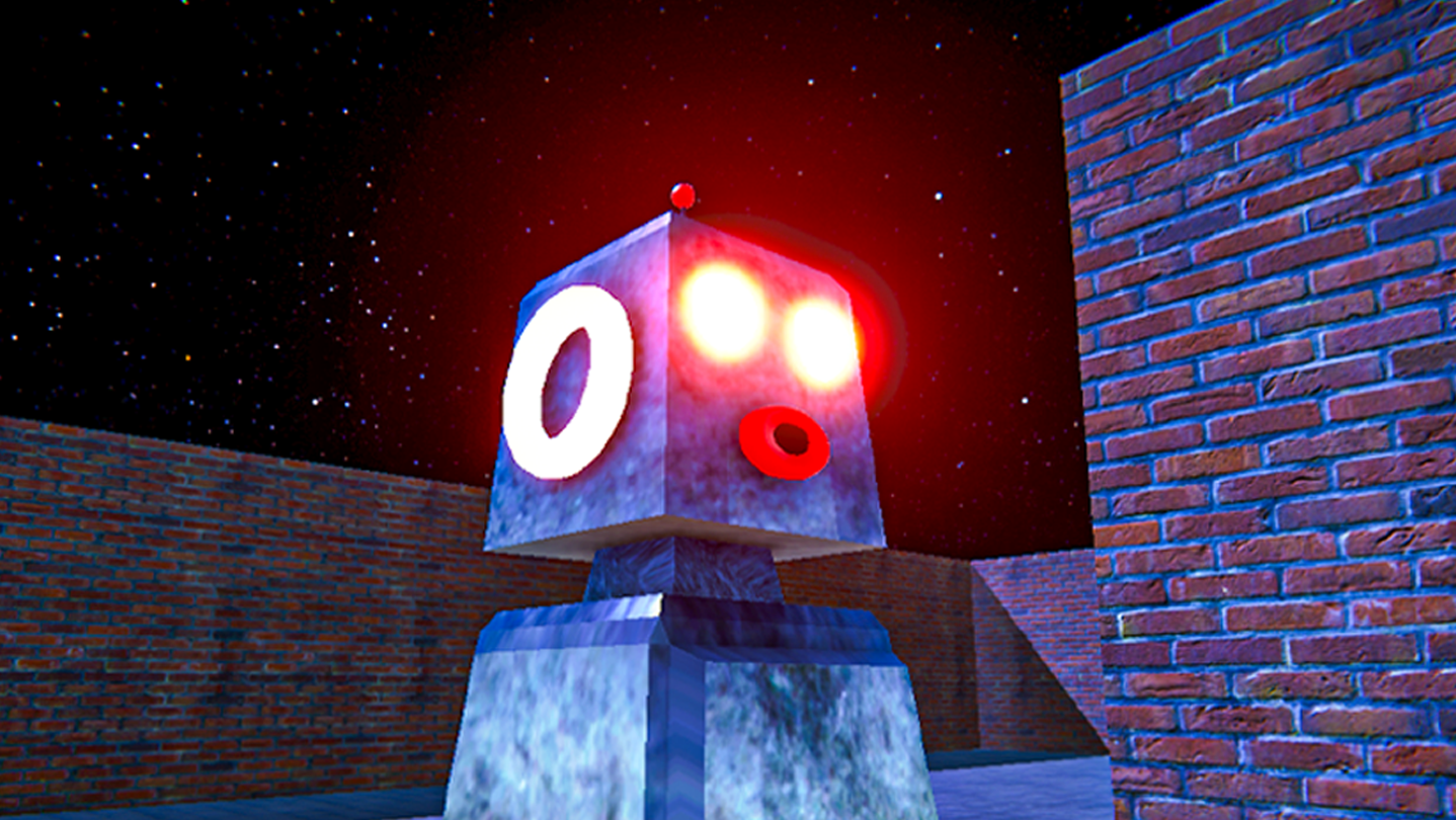 You wake up in a strange world. The walls are tall, the sky is dark, and the lights are red. But you are not alone! A security robot is patrolling the maze, and it is looking for you.