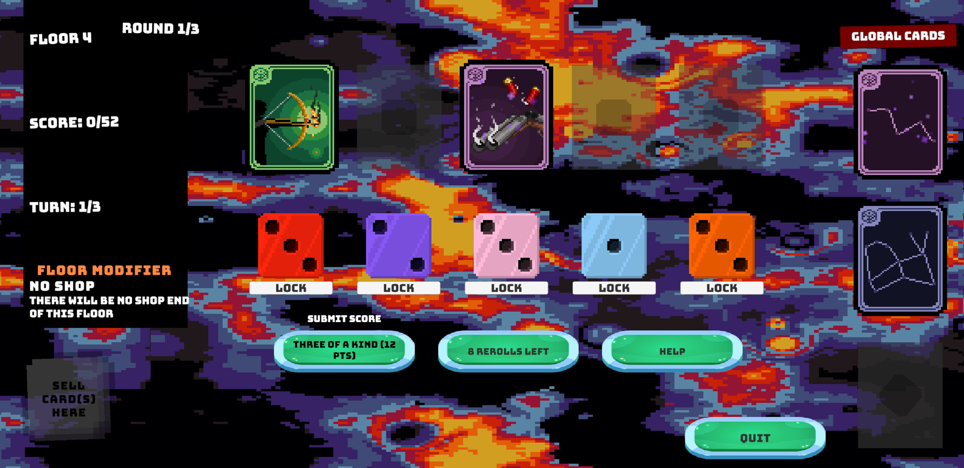 Use Weighted Die with Global and Cosmic cards to create unique and varied synergies and builds. Earn aura by clearing floors, all while gaining access to new cards and upgrading their rarity as you progress. In the world of dice, you need to make sure the odds will always be in your favor, beat the final floor, and see just how unfair you can get!