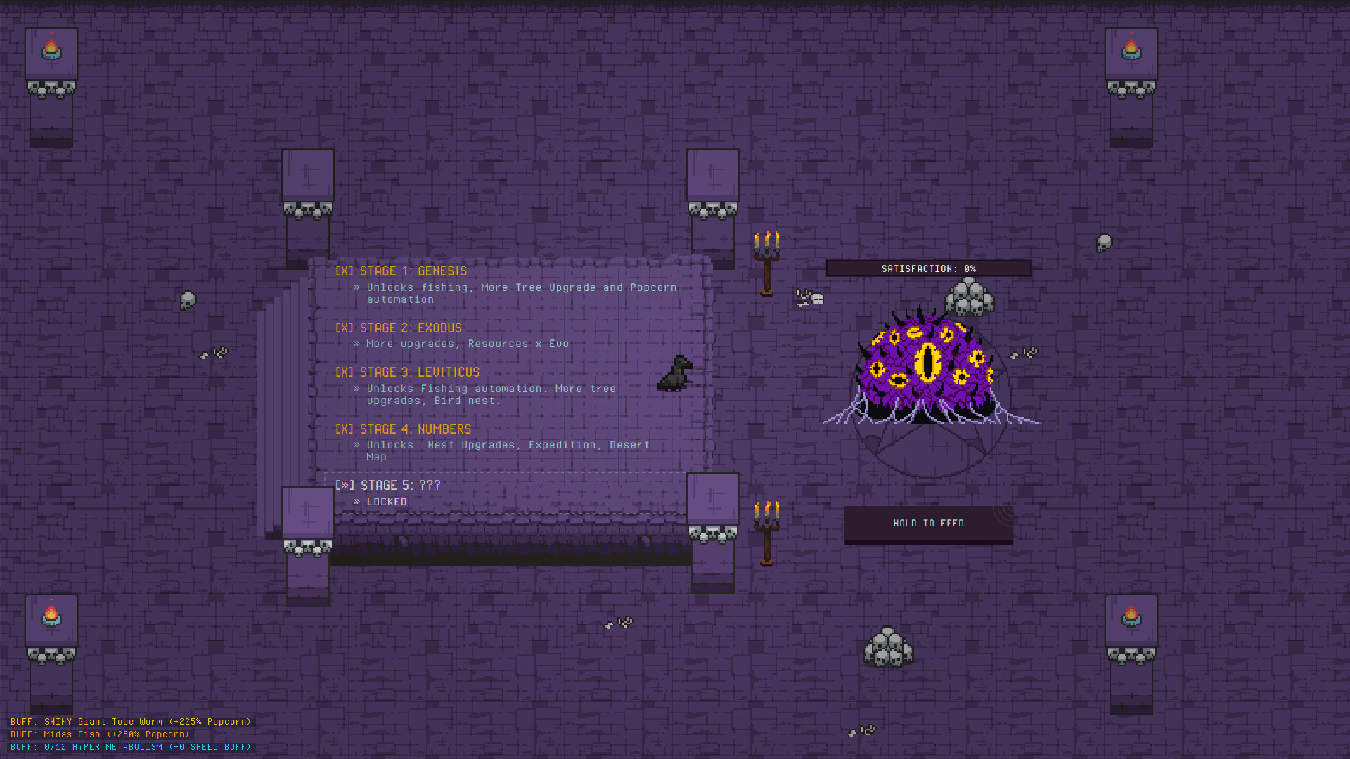 Peck your way to power! Consume endless popcorn to mutate your birb into increasingly powerful forms. Will you remain a bird, or become something... more?