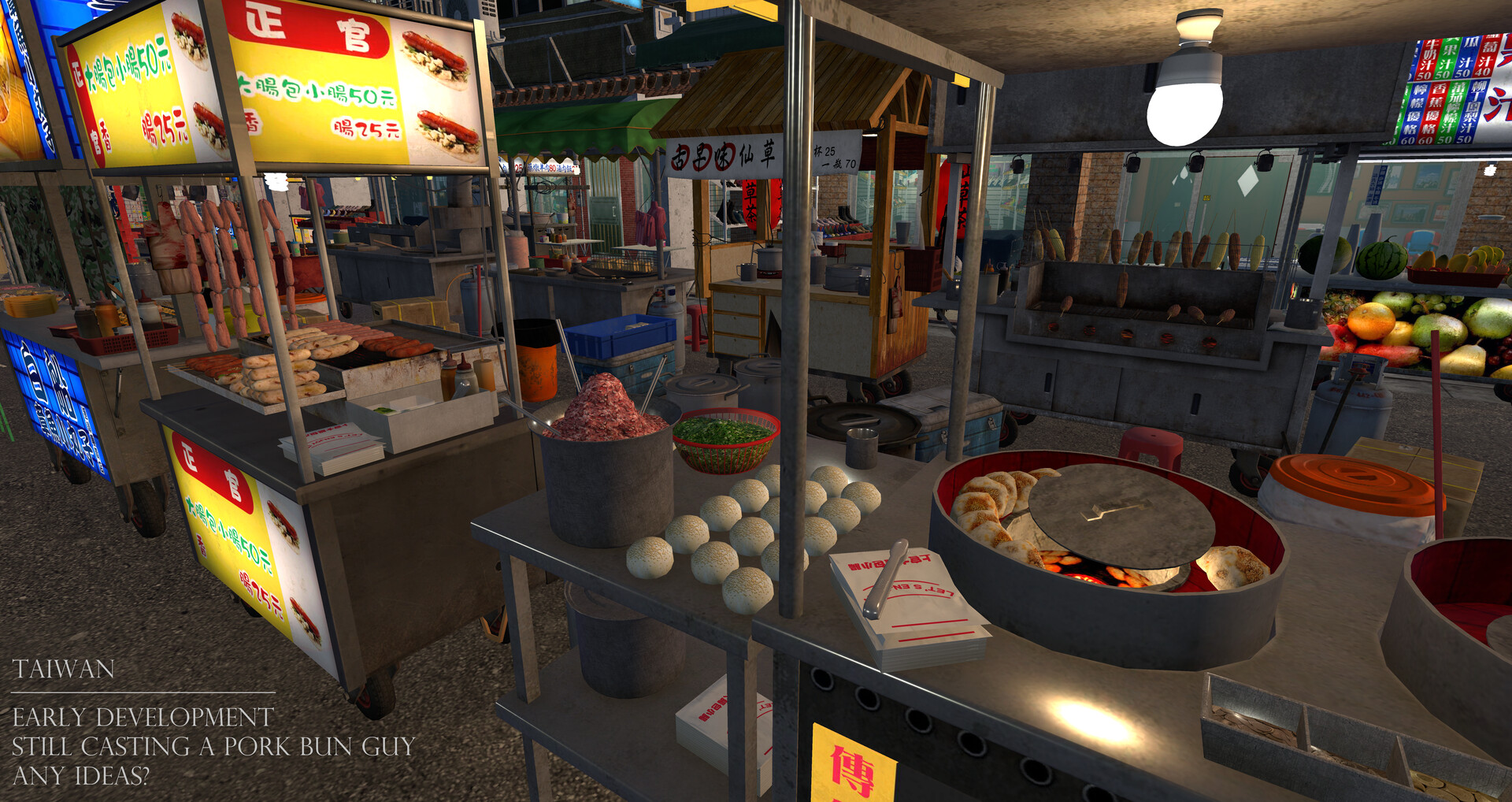 • Lighting and color-grading - we know the colours look a little one-note right now. Honestly, we are learning every day about this topic and may eventually consult an experienced art director on how to NAIL lighting in our project. The day/night cycles make this doubly (or quadruply) tricky - but we'll get there.