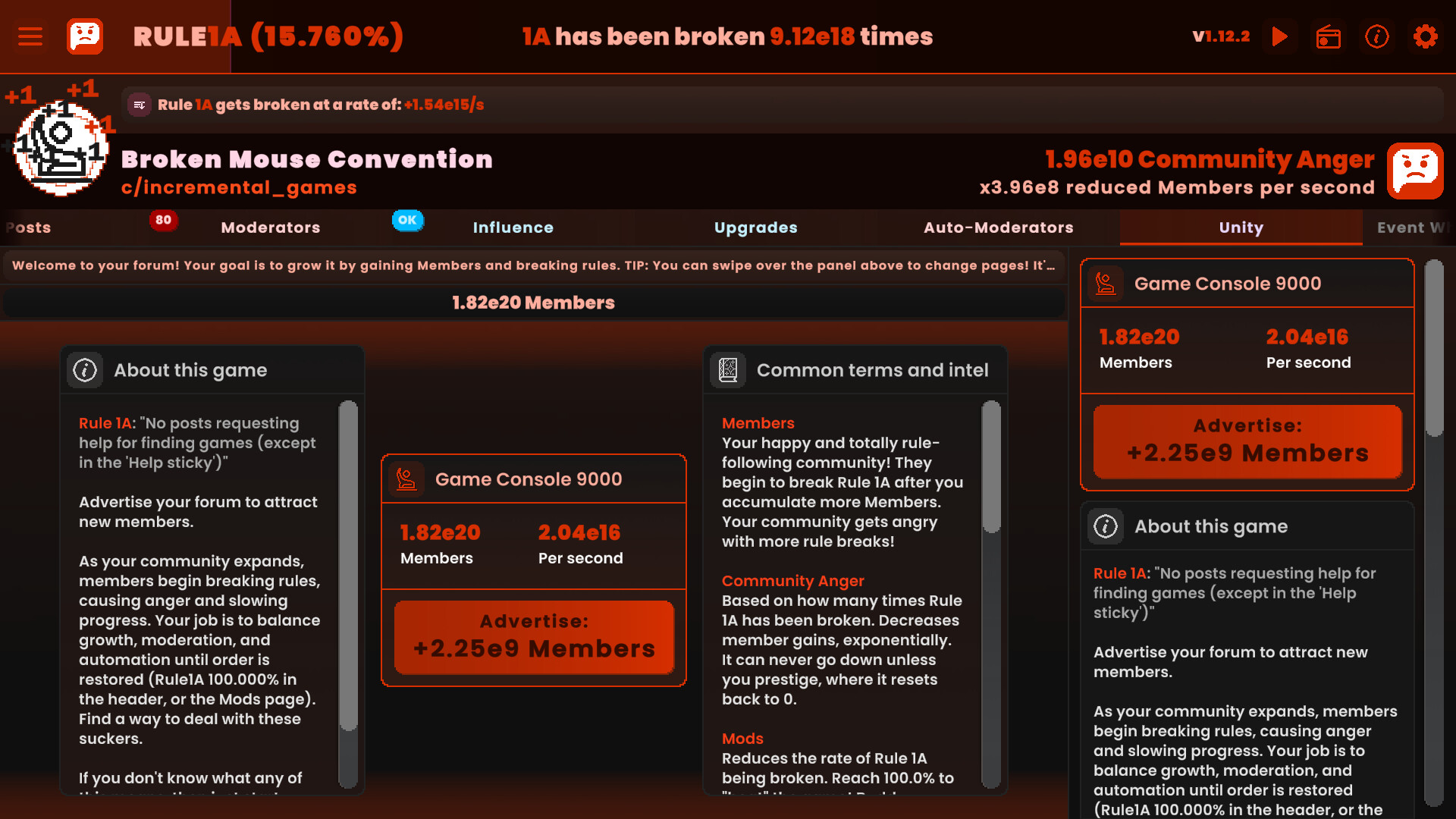 Rule1A Incremental: Idle Forum, is a satirical idle game where you grow an online community while trying to keep chaos under control.