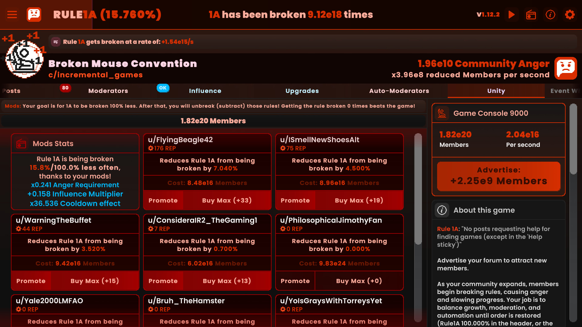 Rule1A Incremental: Idle Forum, is a satirical idle game where you grow an online community while trying to keep chaos under control.