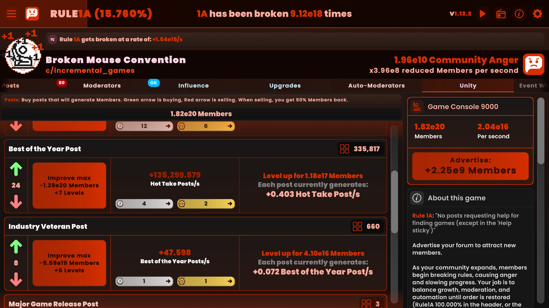Rule1A Incremental: Idle Forum, is a satirical idle game where you grow an online community while trying to keep chaos under control.