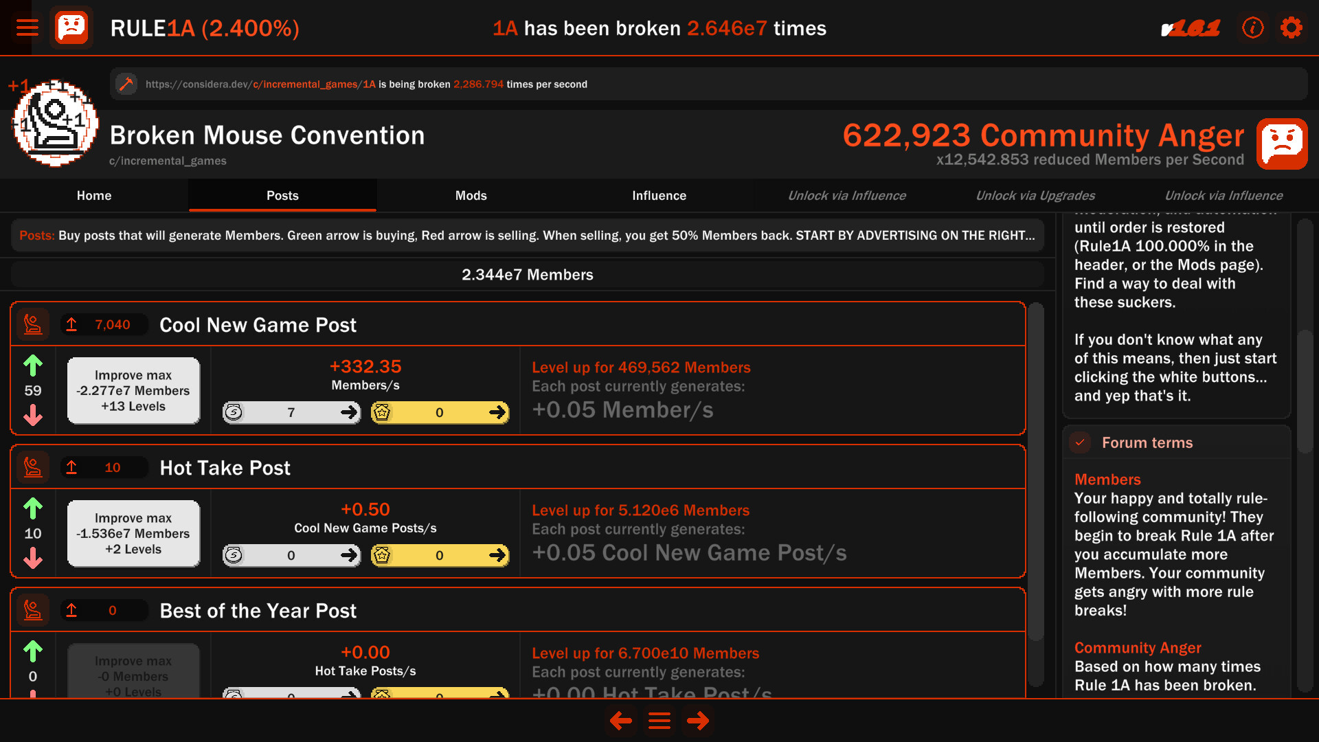 Rule1A Incremental: Idle Forum, is a satirical idle game where you grow an online community while trying to keep chaos under control.