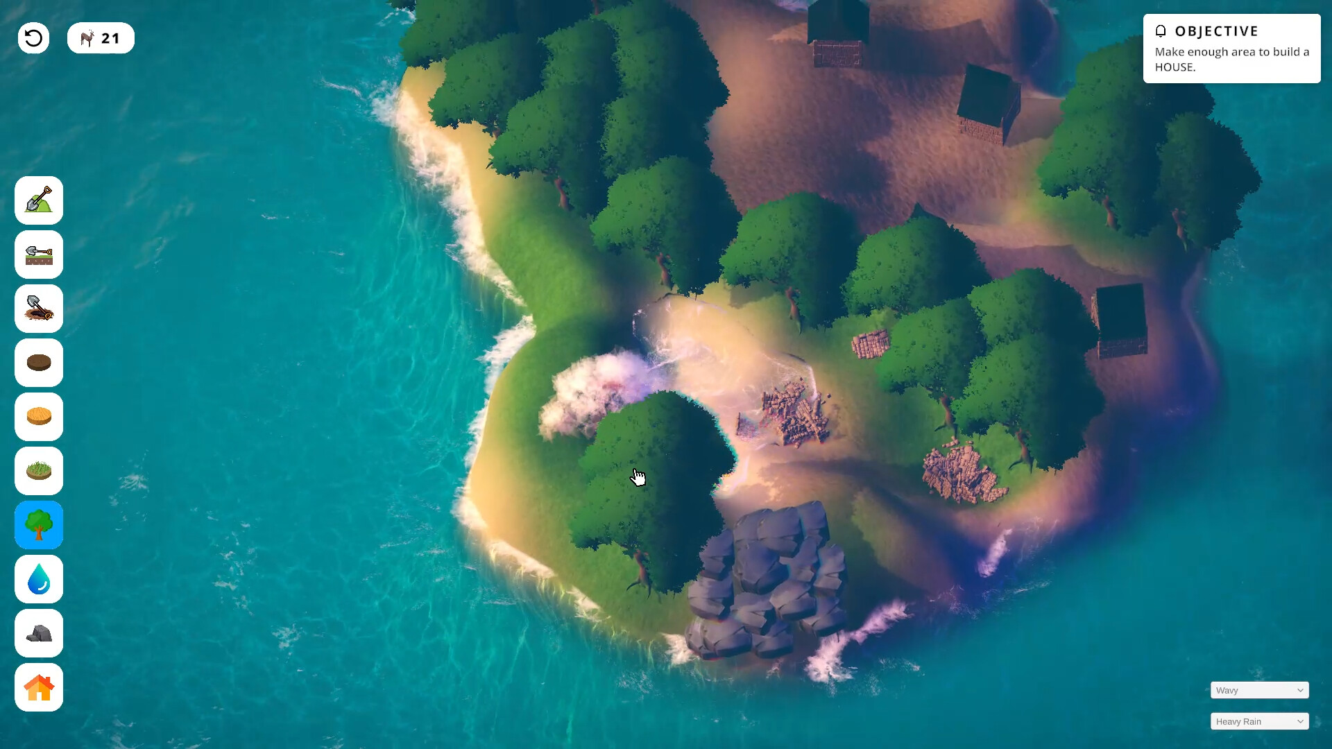 Mold the land freely by raising hills, smoothing slopes, and forming shores. Dig rivers, create ponds, and watch water flow naturally across the terrain, reacting to elevation and the shape of the land. Every change you make becomes part of a living environment.