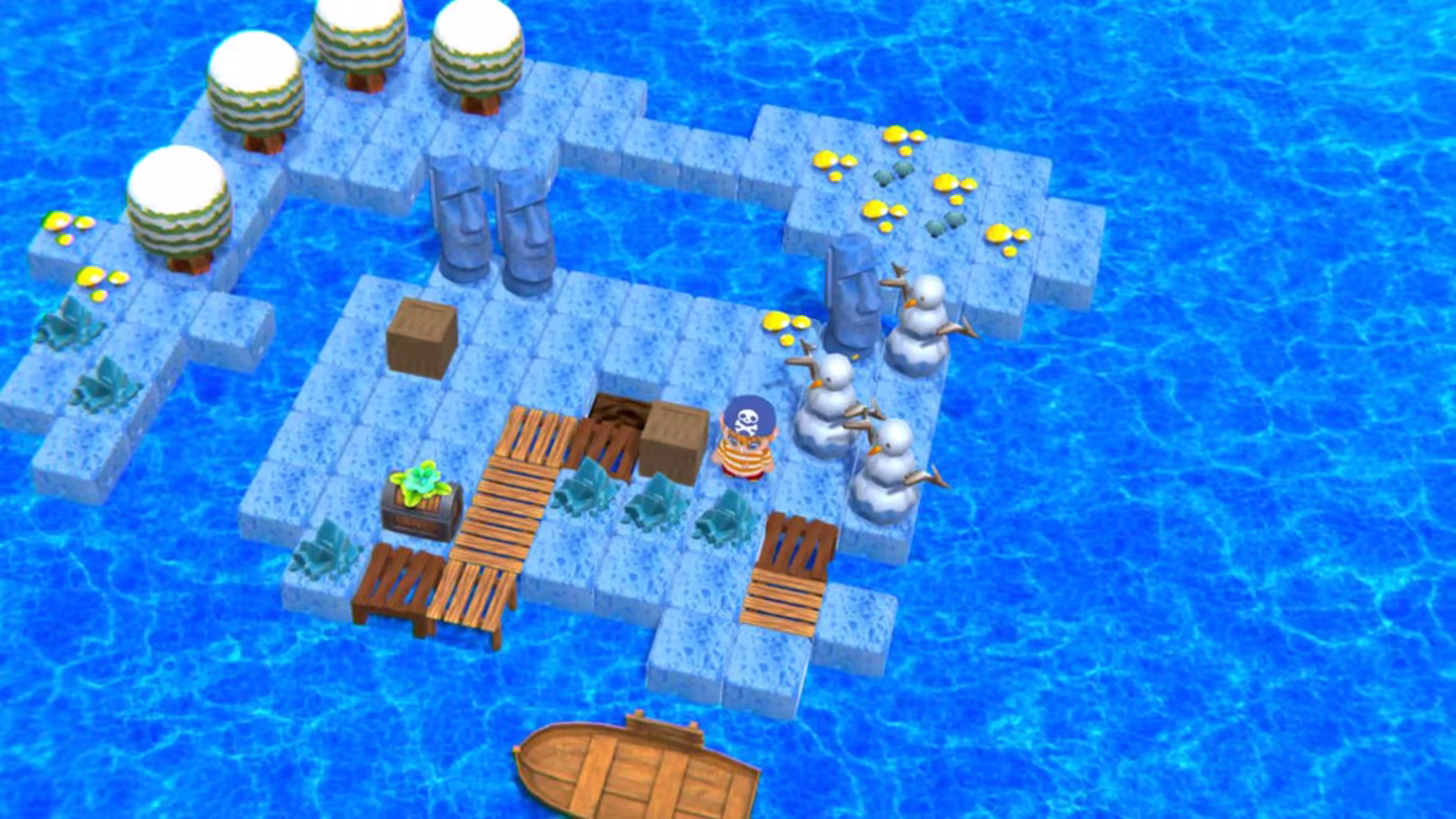 • Push boxes, treasure chests, totems, snowmen, and cannons