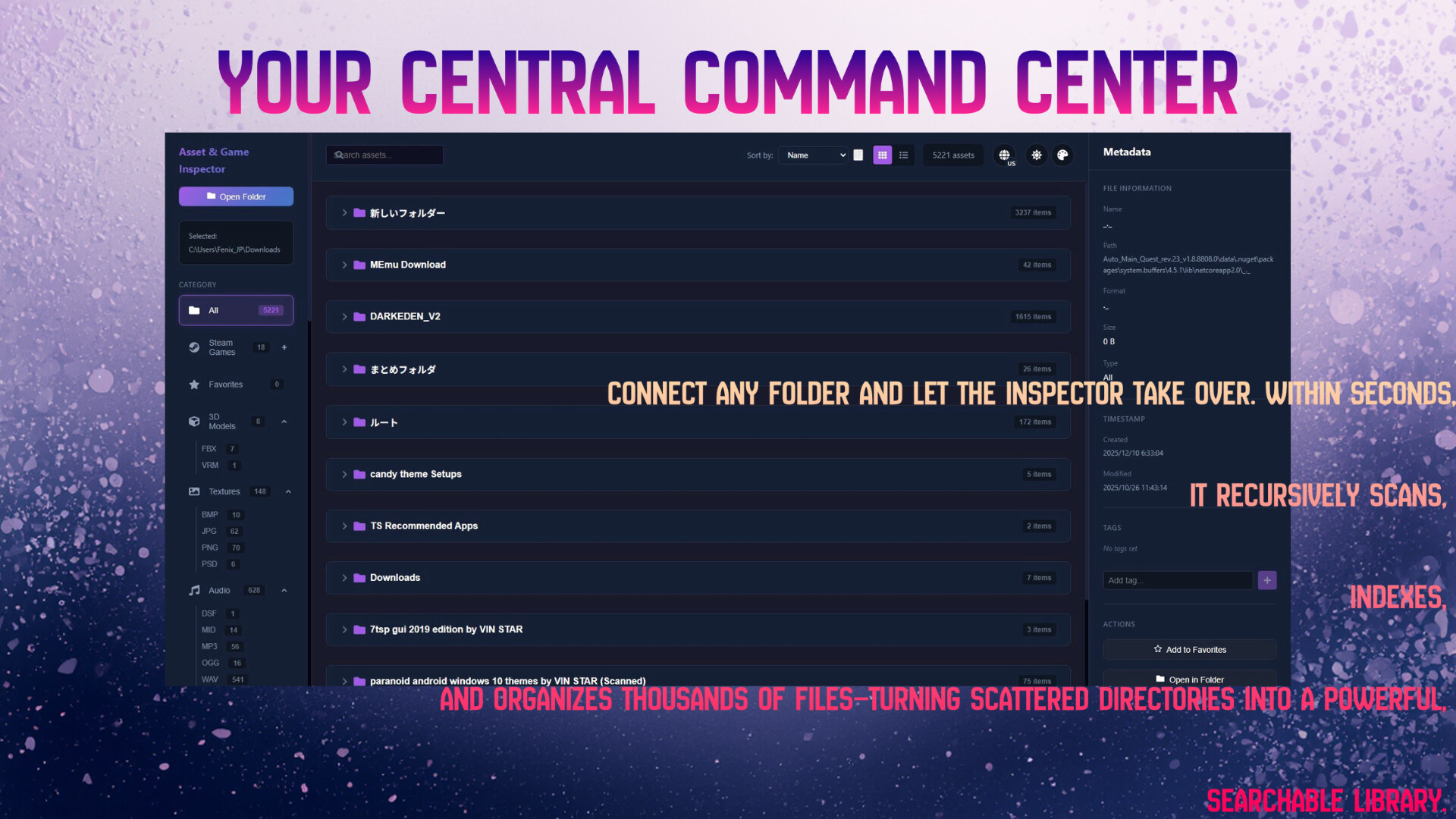 Asset & Game Inspector is a powerful desktop utility designed for game developers, digital asset managers, and Steam gaming enthusiasts who need efficient library and asset management.