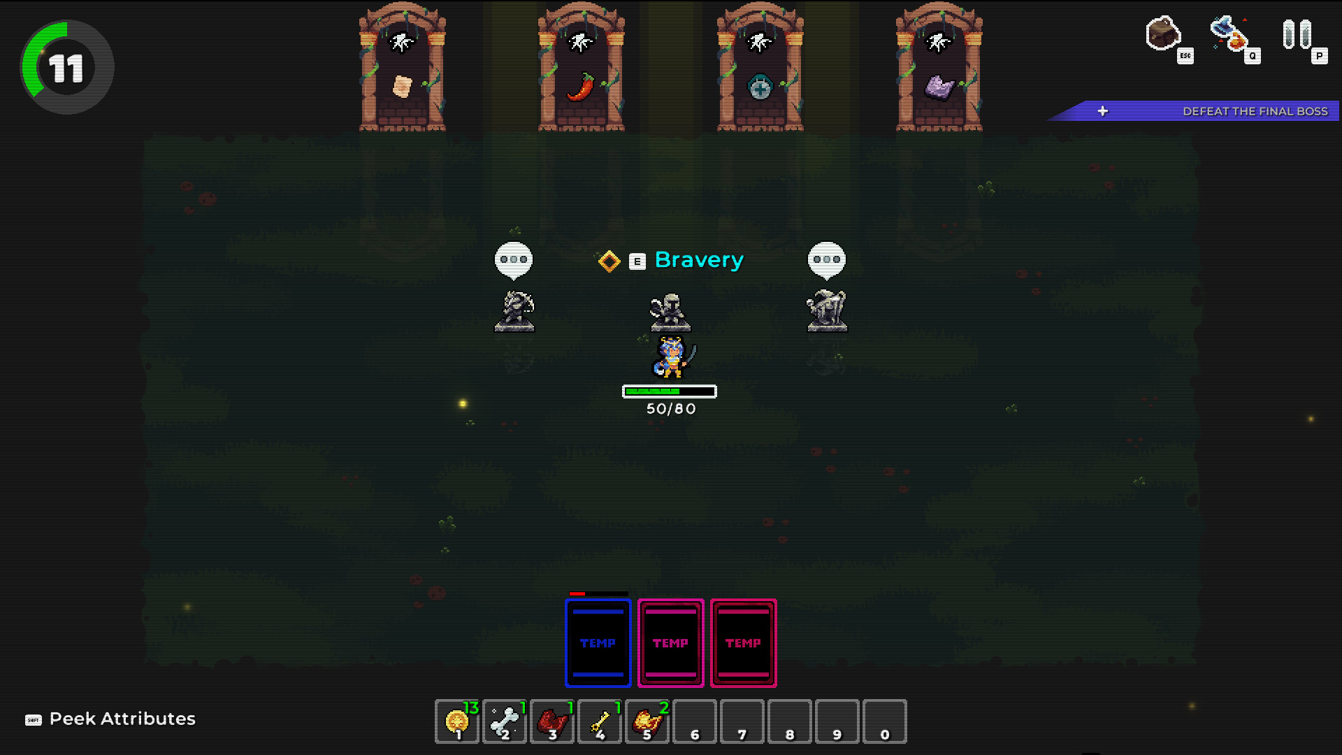 Bosses appear throughout the run, testing different aspects of your build.