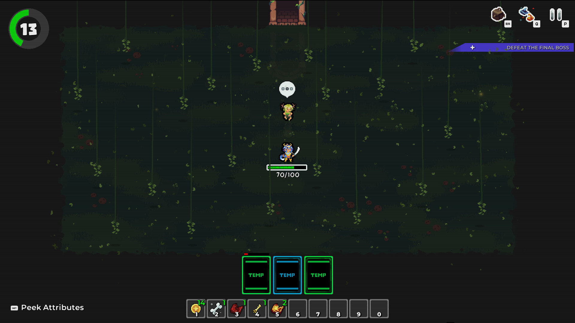 Bosses appear throughout the run, testing different aspects of your build.