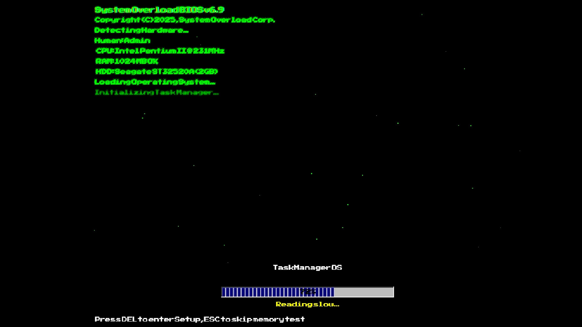 SYSTEM STATUS: UNSTABLE> System Overload is a resource management sim disguised as a Win95/98 Task Manager. Push your hardware to the limit—just don't trigger a meltdown. >DO_NOT_CRASH.