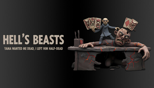 "Hell's Beasts: Yama Wanted Me Dead, I Left Him Half-Dead" Sort souls. Build decks. Beat up Yama! Experience a bizarre first-person workplace sim + card battler featuring retro claymation and over-the-top FMV.