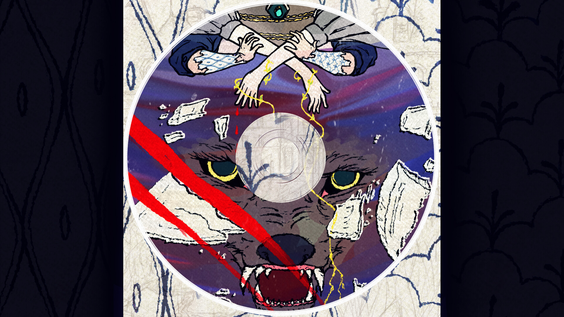 The music blends electronic textures with live recordings to match the atmosphere of the game, which uses visual assets drawn by hand in pencil and ink on paper.