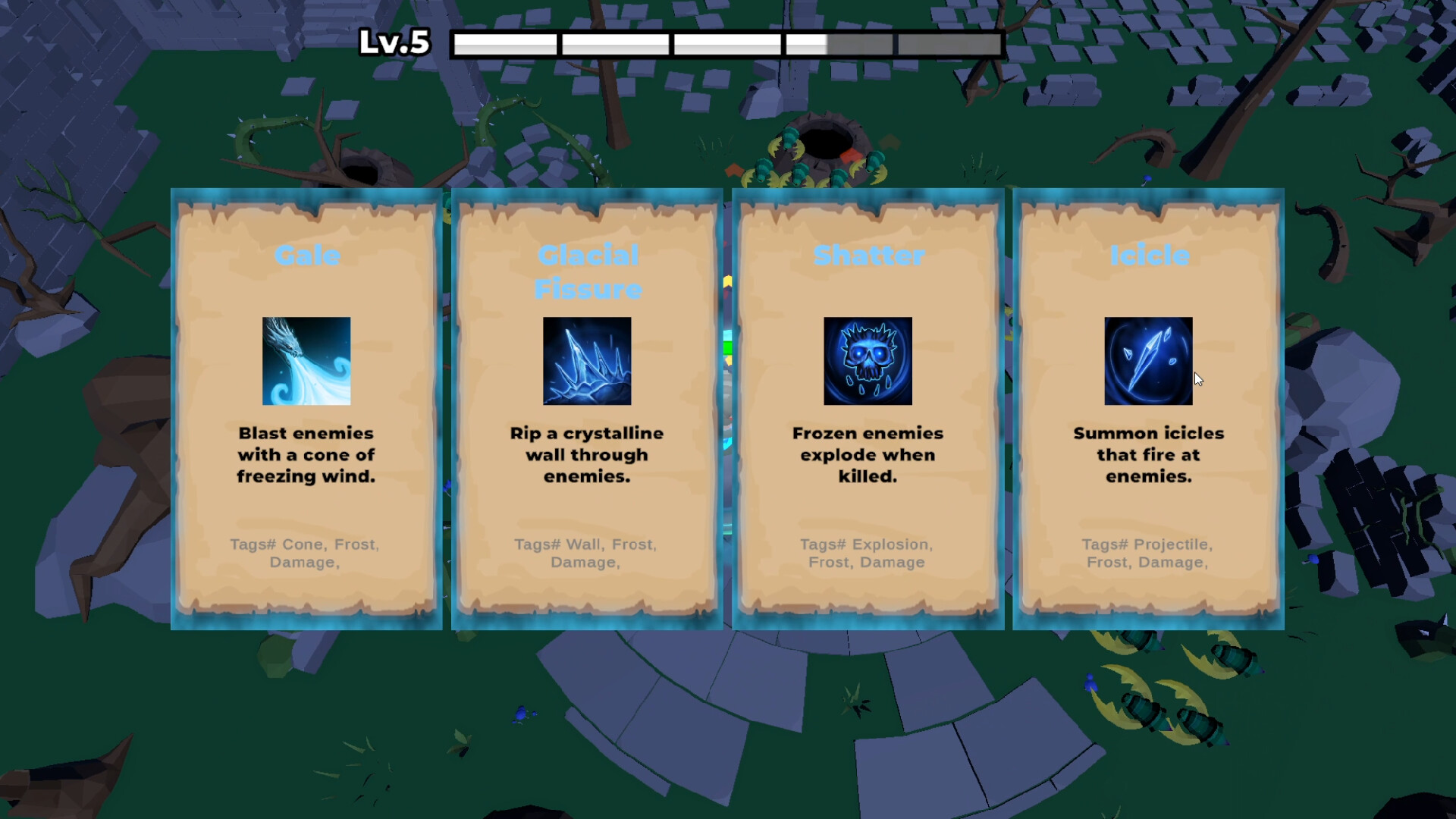 Movement IS damage. A roguelite survivor with 100+ skill cards across Fire, Frost, and Lightning. One stick, total carnage. Every run builds different, every run plays different. Pure chaos and flow state.