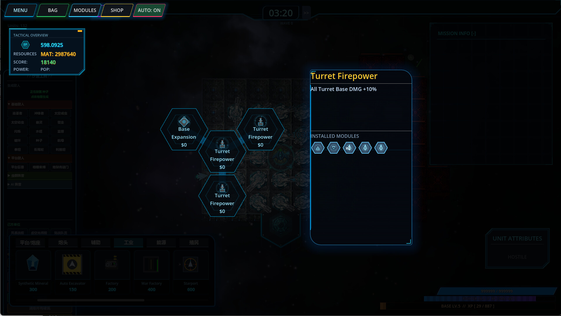 • Mobile Base Mode — Your base platform is equipped with four-directional thrusters. Use WASD to maneuver your entire base around the battlefield to evade attacks.