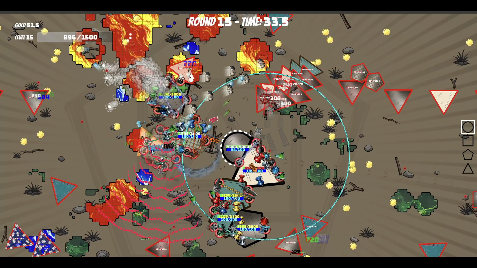 Jeu de survie en escouade au style comic 2D. Commandez triangles, carrés et pentagones à travers des vagues de difficulté croissante. Montez des armes sur chaque côté. Combinez les mêmes armes pour des bonus combo. Brûlez, gelez ou brisez vos ennemis selon leurs faiblesses.