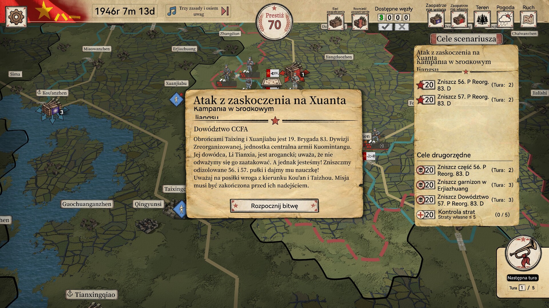 Każda twoja decyzja dowódcza ma kluczowe znaczenie. Wielu działań nie można cofnąć (np. zmiana mgły wojny, wydanie rozkazu ataku). Musisz mieć odwagę działać i ponosić konsekwencje.