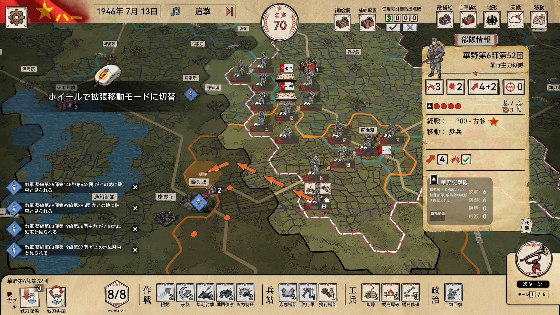 準備はいいか、同志諸君?この『Unity of Command』風ターン制ヘックスウォーゲームであなたは中国人民解放軍を指揮し、解放戦争の中で蠢蠢欲動する反動派を打ち破り、全中国の解放を勝ち取るのです!