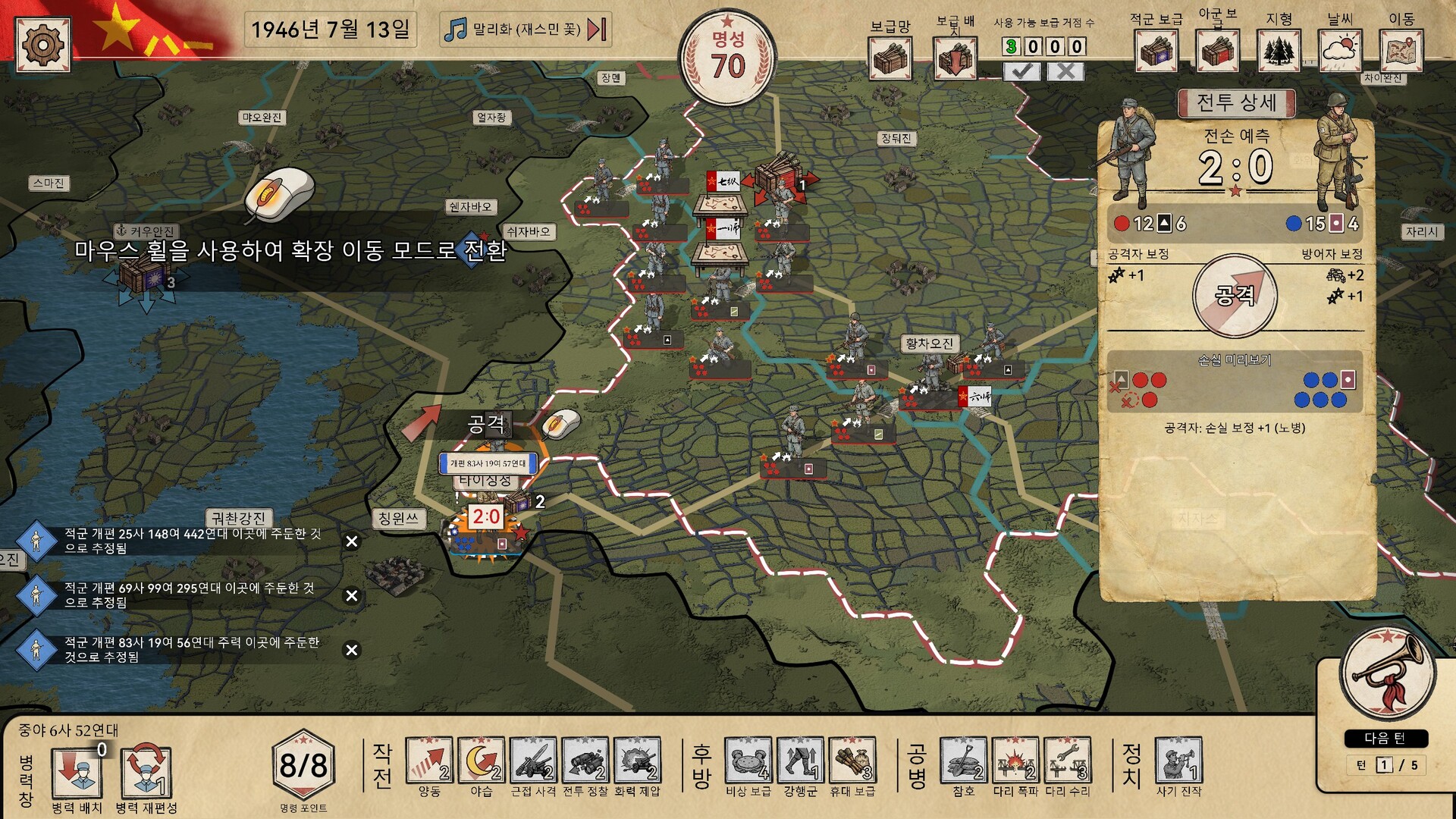 준비되셨나요, 동지 여러분? 이 'Unity of Command' 스타일의 턴제 헥사곤 워게임에서, 당신은 중국 인민 해방군을 지휘하여 해방 전쟁 중에 웅동하는 반동 세력을 강타하고 전 중국의 해방을 이끌어 낼 것입니다!
