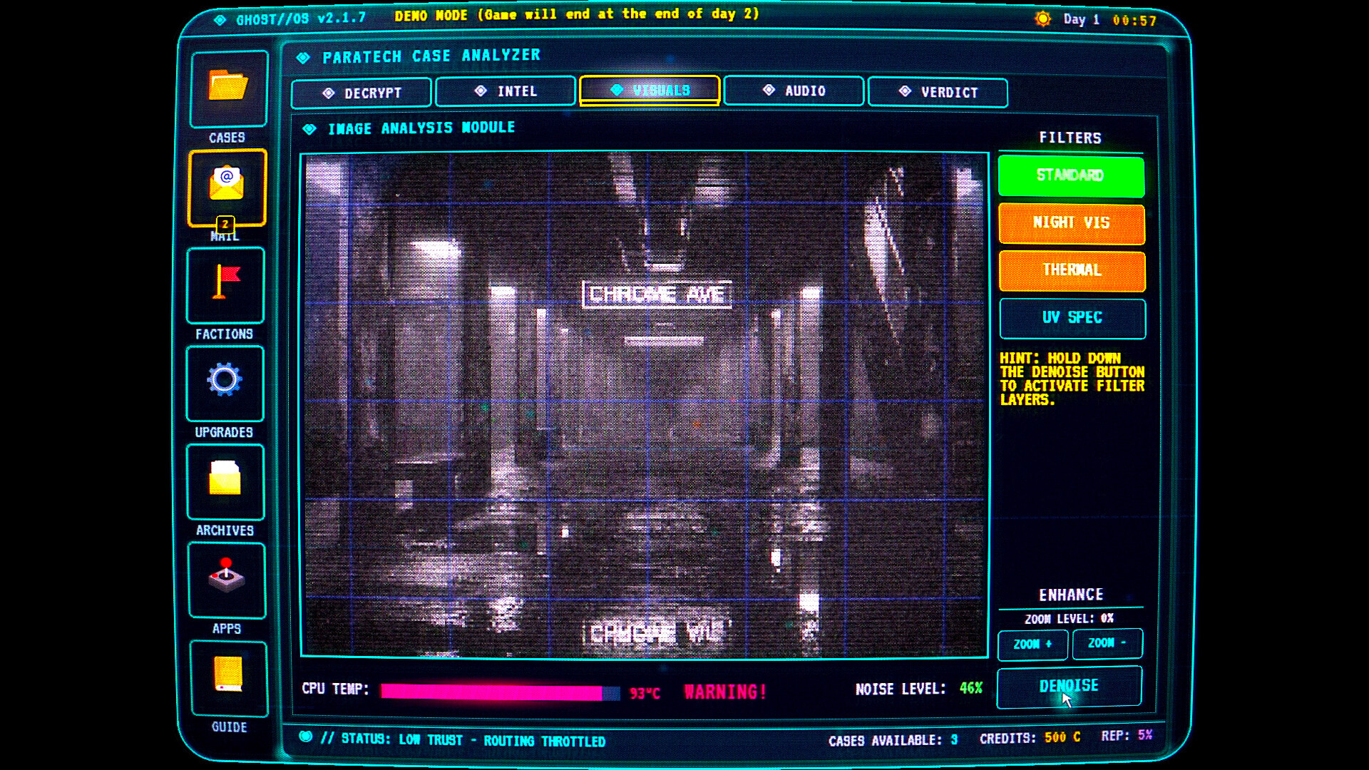 Investigate paranormal cases using a 1990s CRT terminal. Analyze photos. Decode audio. Interrogate suspects and decide what’s real, what’s fake and who’s lying. But the deeper you go, the more the system starts watching you back.