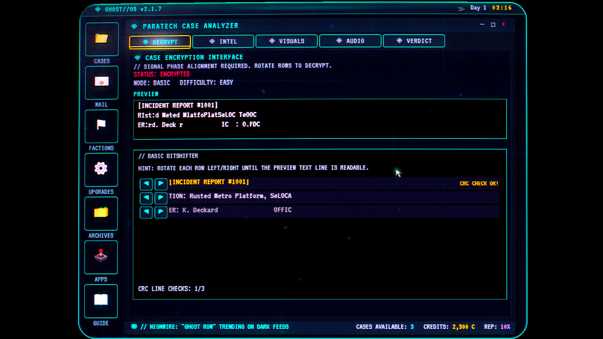A cyberpunk paranormal detective sim played entirely through a CRT terminal. Analyze evidence, expose hoaxes, and survive faction politics before rent is due.