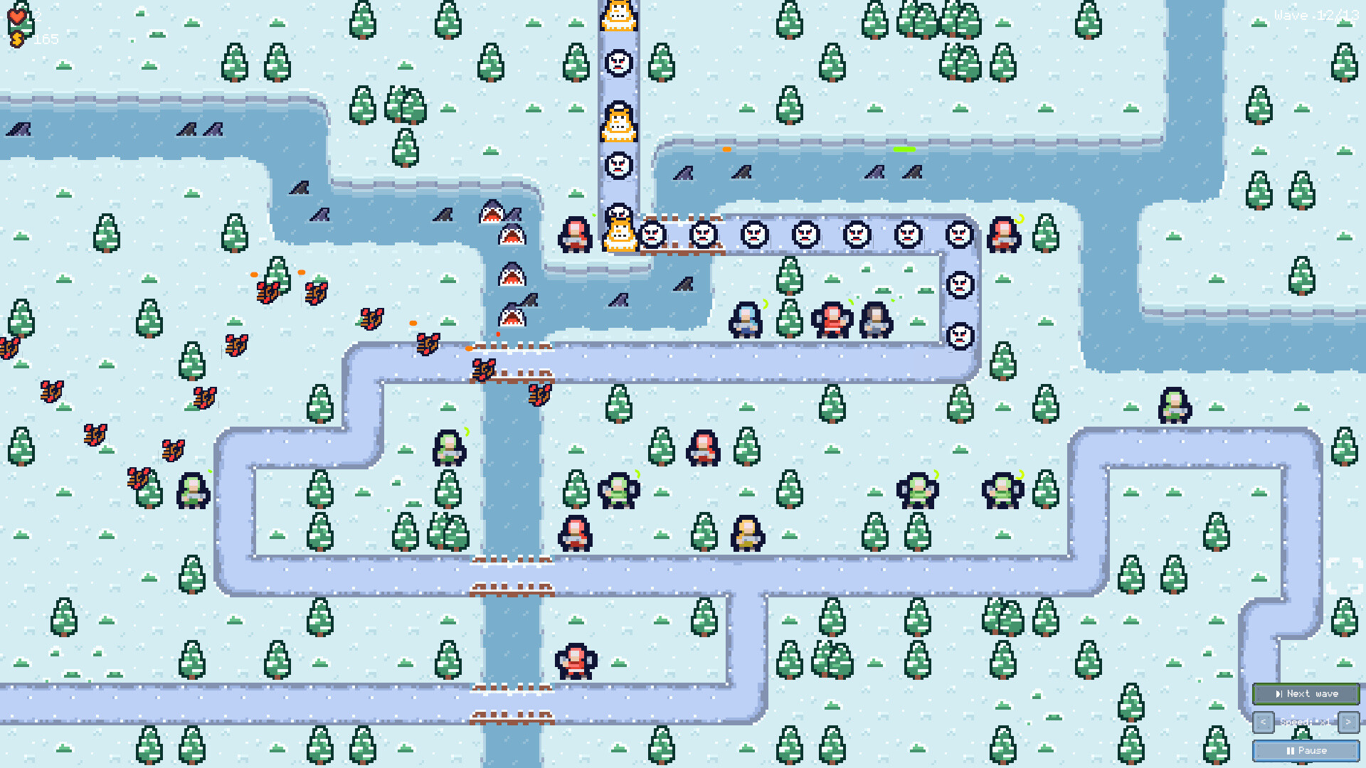 Размещайте юниты, чтобы контролировать пути врагов и защищать базу.