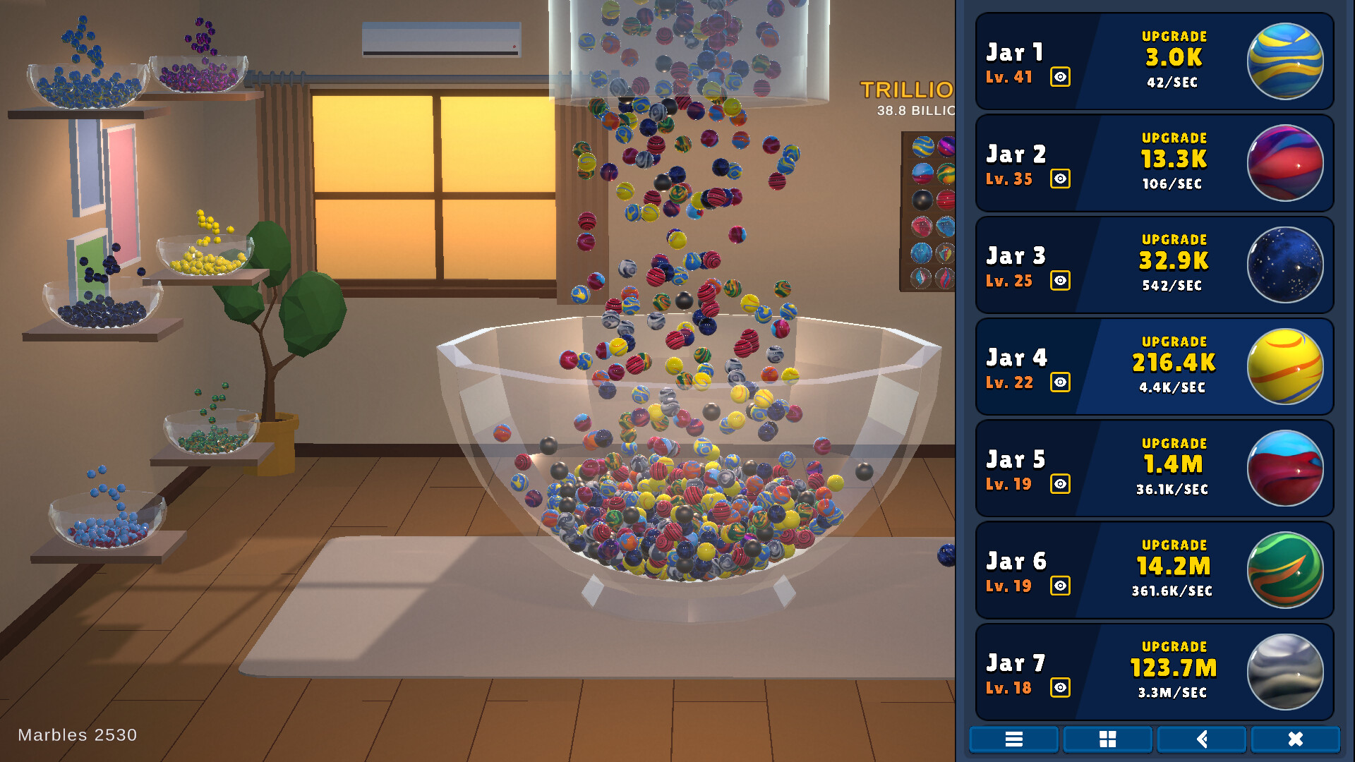 Beyond numbers, Marble Idle Collectionist is about atmosphere. Customize your room, marbles, and shape the soundscape with different collision tones and ambient layers, soft, sharp, sandy, or something in between.