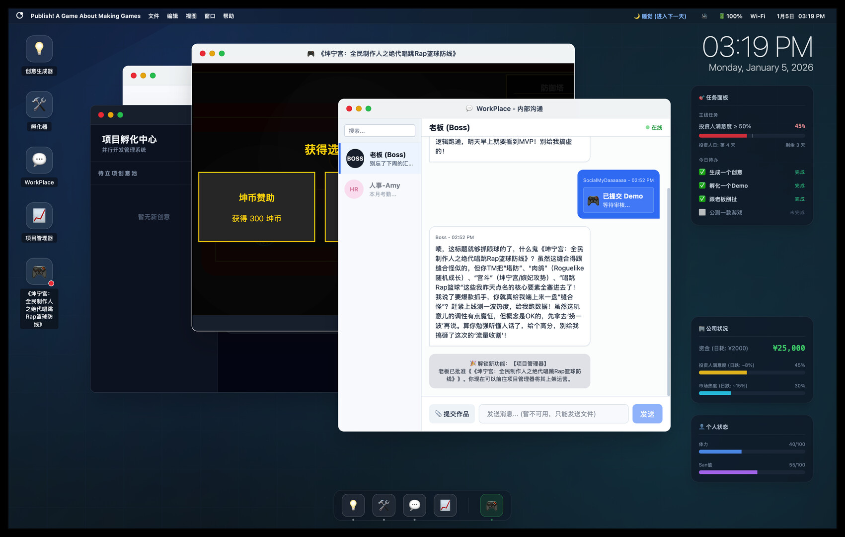 现在,打开电脑,点开那个名为“WorkPlace”的聊天窗口,准备好迎接这一天的混乱吧。 记住,我们要的不是好游戏,我们要的是——上架!