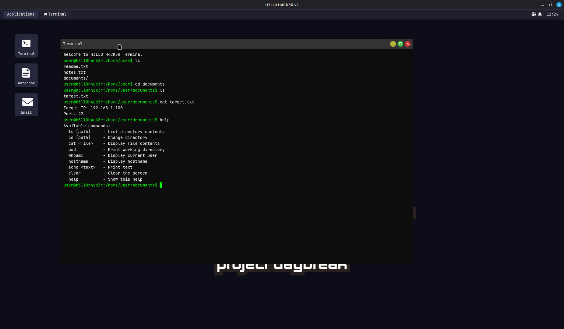 HELLO HACKER - Project Daybreak, is a hacking simulation game that takes place from within a full GUI that is similar to a full Linux desktop environment. Players will complete CTF style challenges while progressing through story rich gameplay.