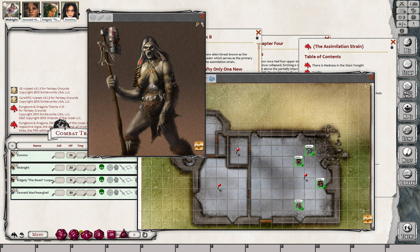 Requires: The free Fantasy Grounds virtual tabletop (VTT) software and the included 5E Compatible ruleset.