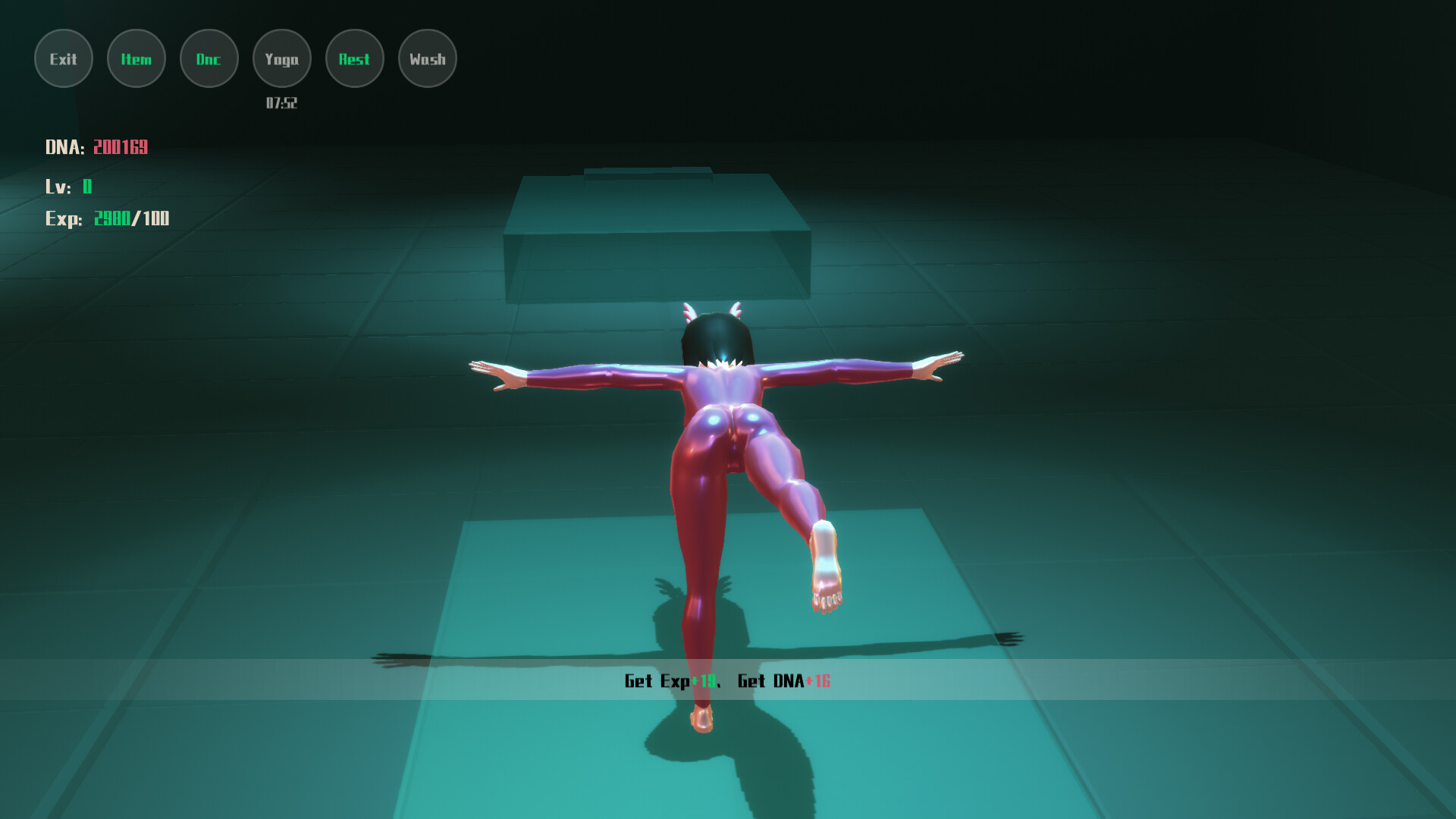 The game includes various engaging subsystems such as dress up, clothing damage, leisure activities like resting or exercising in a bedroom setting.