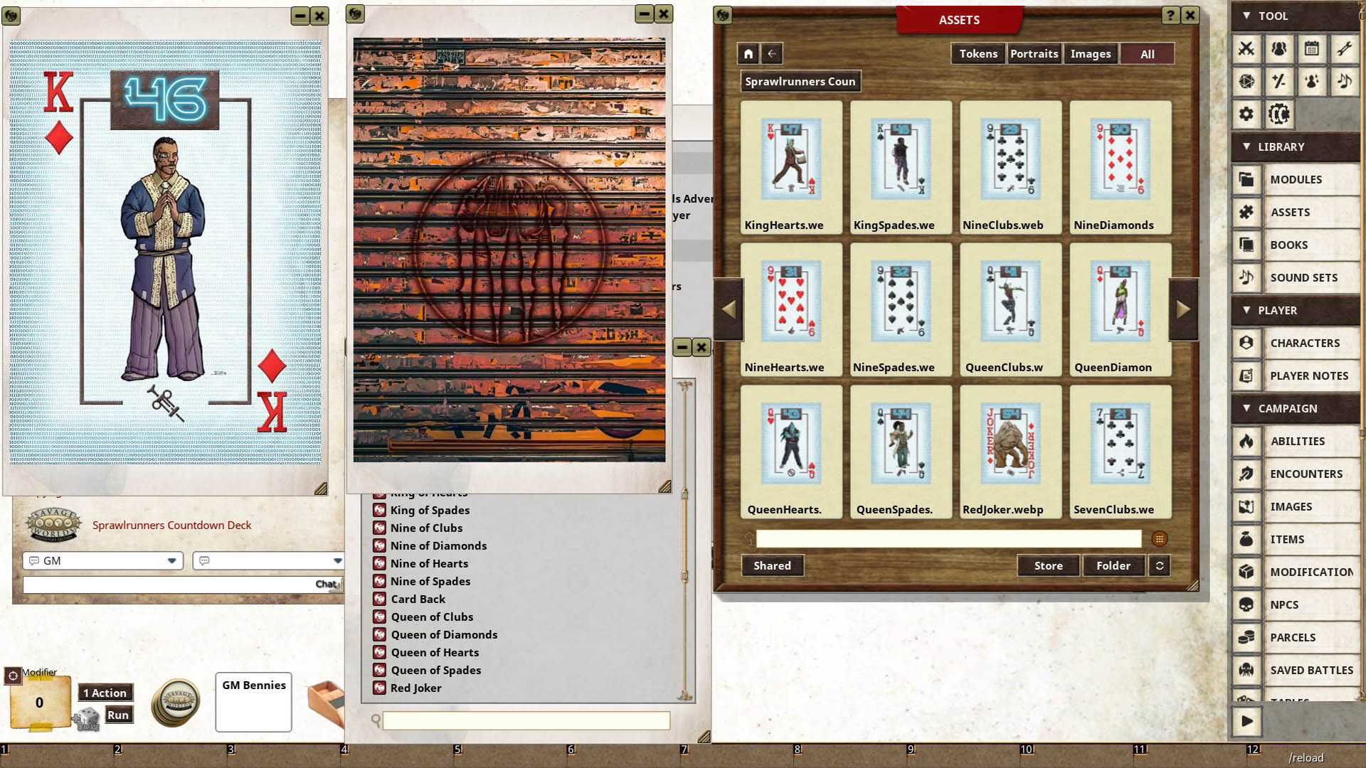 This deck of playing cards is designed to be used with the Sprawlrunners module, and offers the following features: