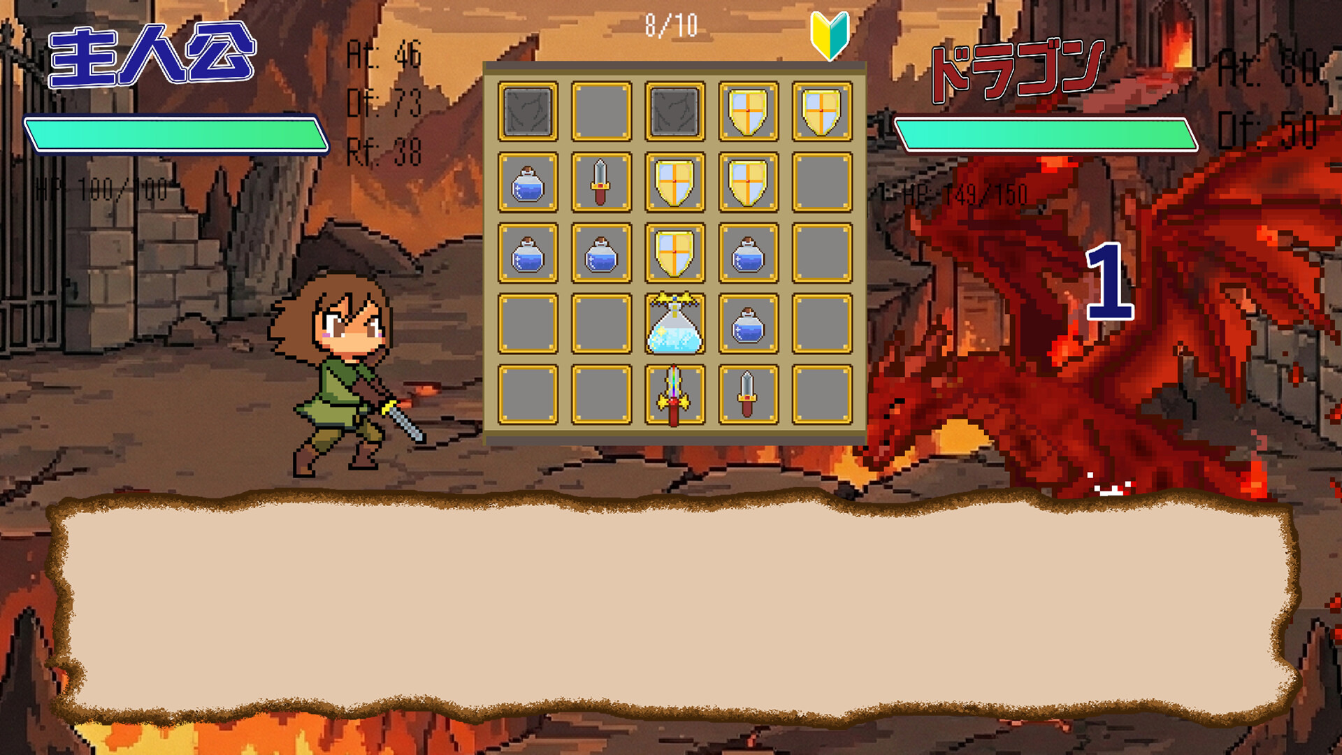 プレイヤーは剣、盾、ポーションの3種類のピースを