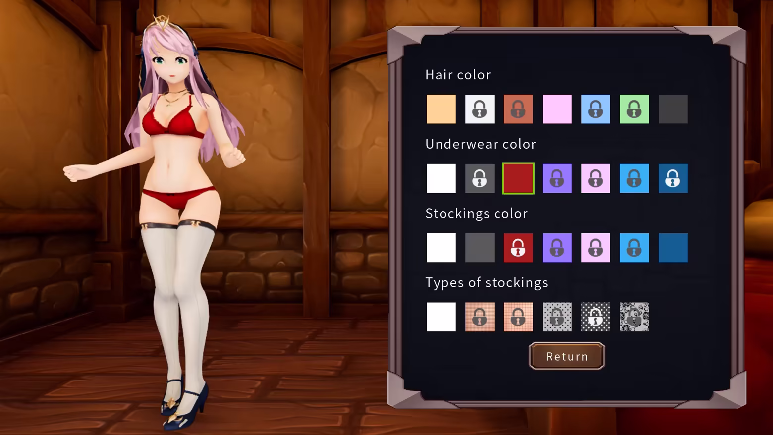 Utilisez vos pièces restantes pour modifier la couleur des cheveux, des sous-vêtements ou les motifs des bas de votre personnage. Créez l'apparence qui vous plaît !