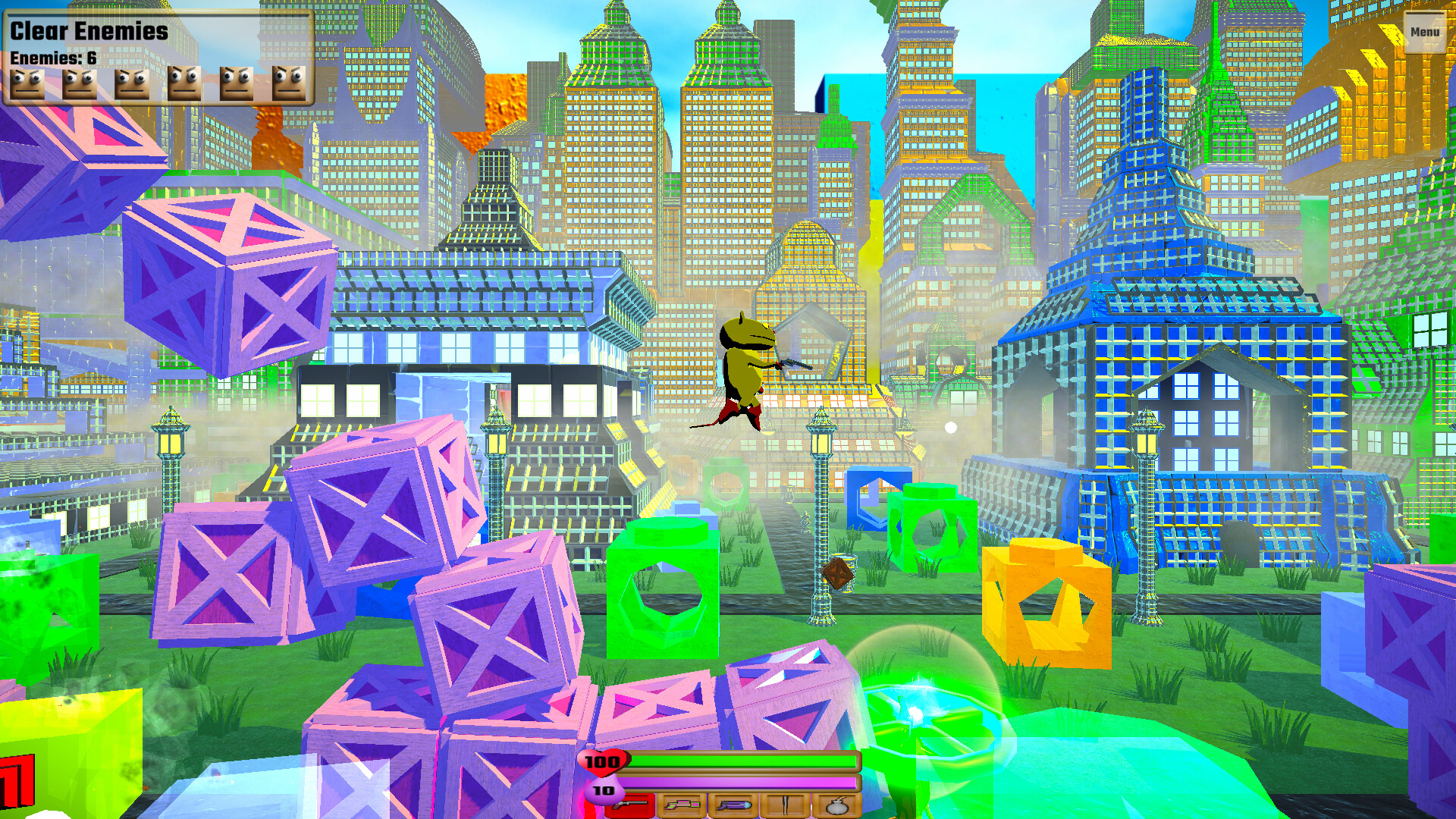 Welcome to Mowigun’s World. You awake with no memory in Imagination Land, a colorful world made of elixir. The world is under attack by animal-like robots. As you progress, you uncover the reality behind the robots’ origins. This is a 2.5D action platformer with a bunch of chaos.