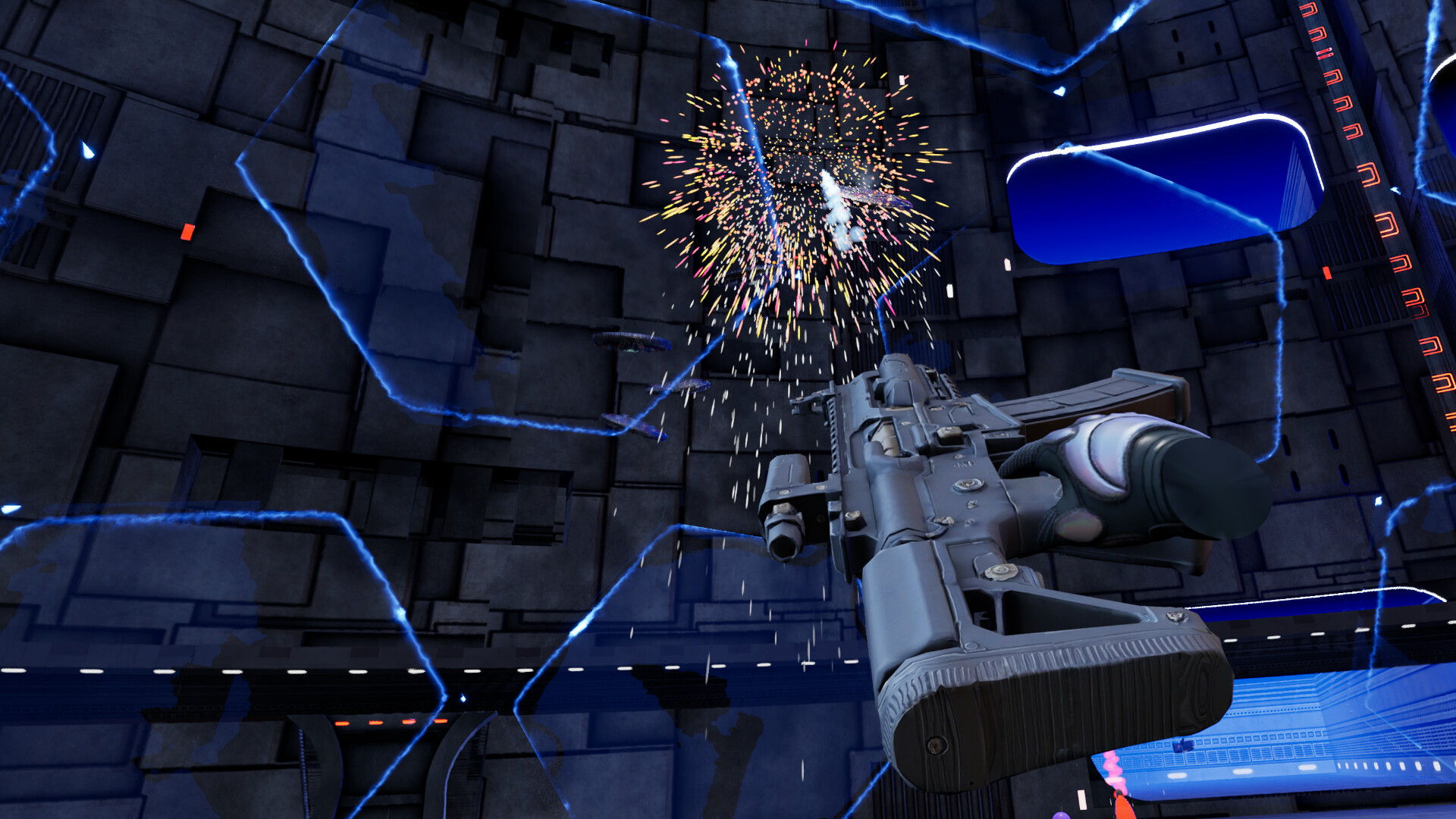 • Wave-Based Combat: Face endless robotic enemies using a mix of spells and modular firearms.