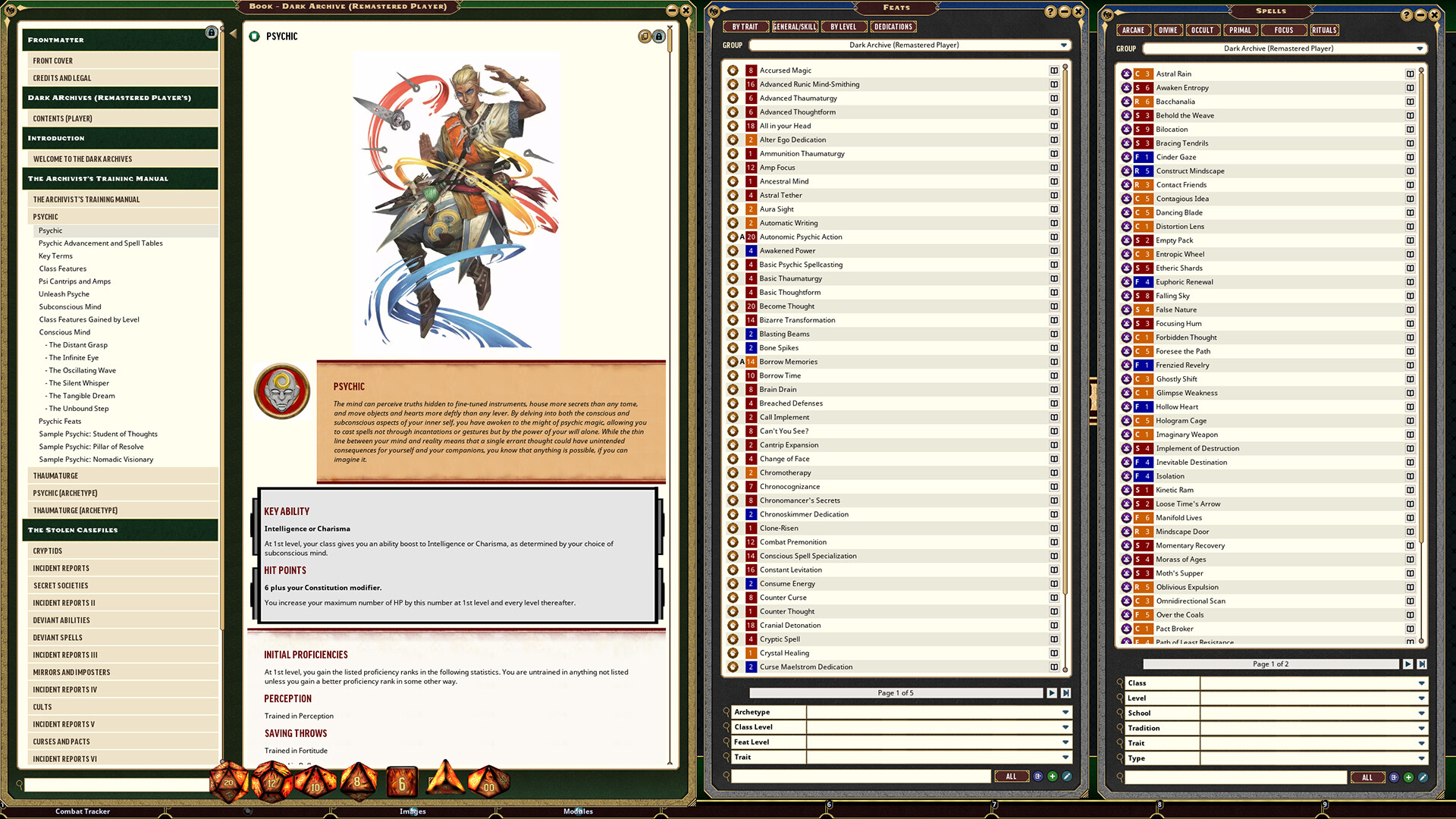 Pathfinder Dark Archive (Remastered) contains secrets that any player or GM can use to reveal the paranormal lurking in their Pathfinder games, all updated to work perfectly with the remastered Pathfinder Second Edition rules! This spine-tinglingly secretive 224-page hardcover rulebook presents two new character classes perfect for delving into the unexplained: Unleash the untold power of your mind as the psychic or leverage supernatural secrets and mystic implements as the thaumaturge!