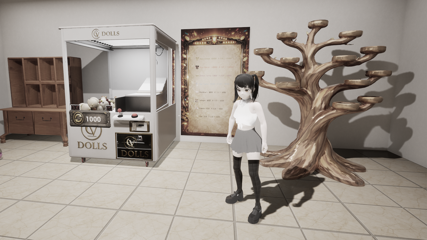 A realistic claw machine simulation. Collect dolls, trade them to manage money, and face gambling mechanics driven by chance and choice. Gift dolls to the heroine to raise affection and reach the final day.