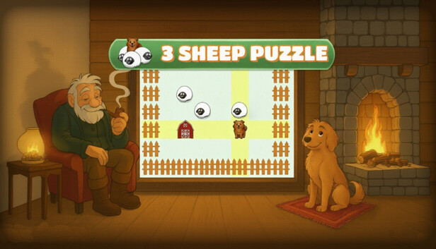 Help Grandpa Ivan's dog, Borbo, lead some cute sheep into the barn to protect them from the harsh winter ahead. You'll solve a series of intricate puzzles in this logic game inspired by the classic Sokoban. In 3 Sheep Puzzle, the visual simplicity hides challenges that will test your planning skills and spatial awareness. Every move counts. As the sheepdog of this small flock, you must move the sheep from a distance and guide them to the barn.