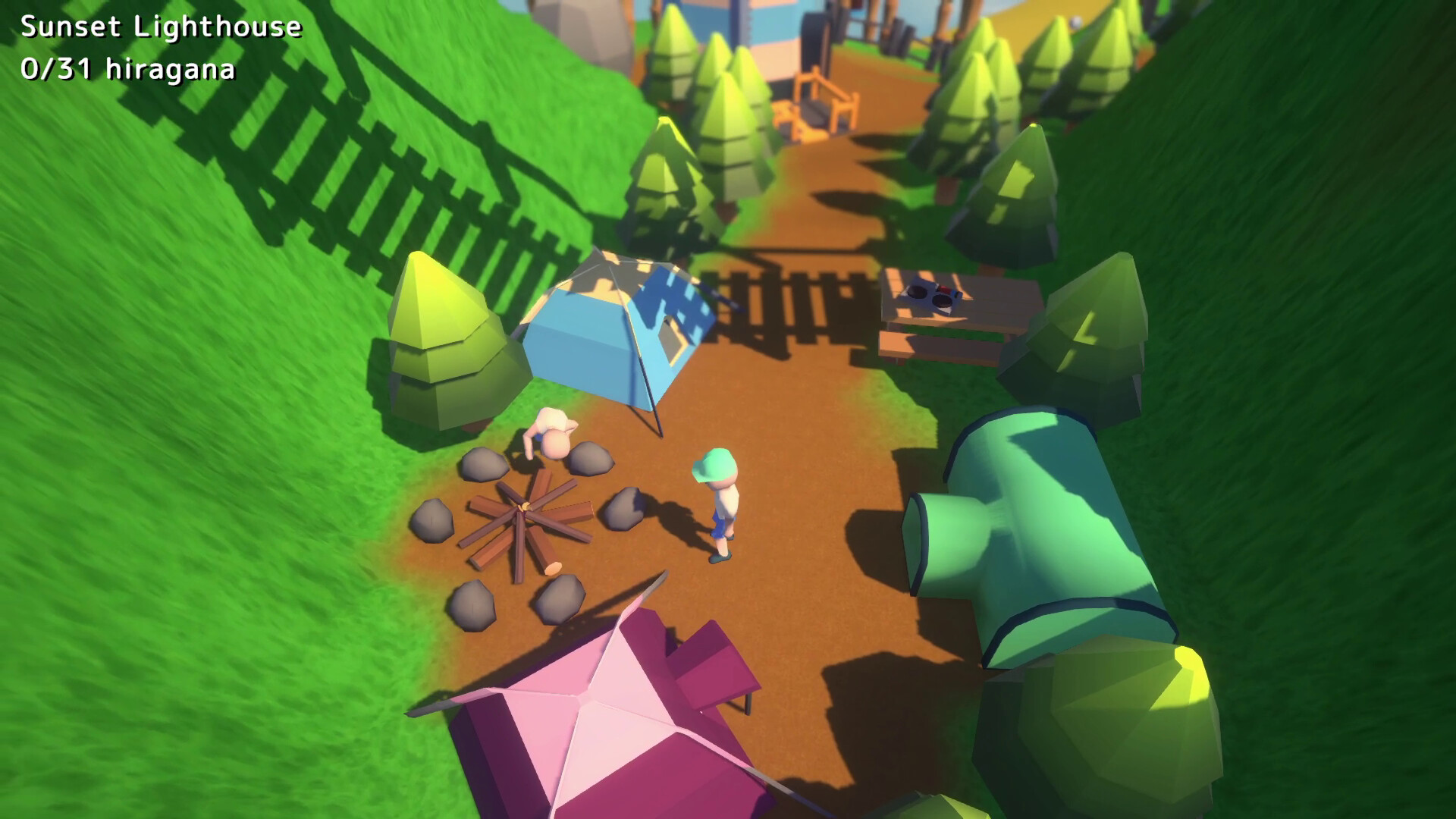 Travel through 4 different regions of Hirajima and talk to NPCs. If you can complete their challenges, they will teach you Hiragana and Vocabulary to add to your Hiragana Dex and Jisho.