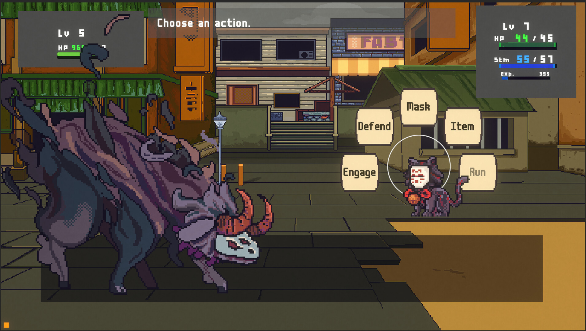 The prototype will be available for play-testing here so that  can collect feedback to ensure the game feels as good as it can and develop a fun experience. Just testing out the mechanics and making sure it exports properly. I have several masks which can be used in combat at the moment, with 50 planned for the playable demo, the play test has 12 or so masks. Each mask has 4 attacks, one elemental, one status, one basic and one stronger attack, each consuming a specific amount of stamina you have to juggle in combat and having to defend to recover stamina. With strong inspiration from Jade Cocoon (not the fusion system but story and - most importantly) the trainer character will fight in combat.