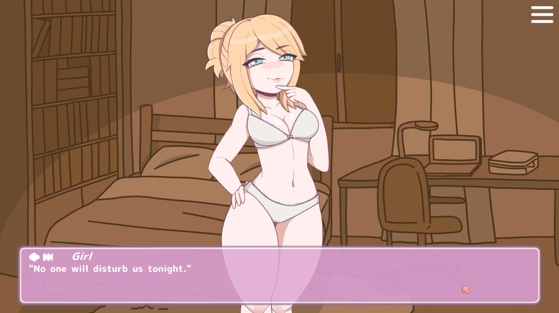 The game featuring suggestive writing, sexual themes, and images of characters in underwear. There is no nudity, detailed description of sex or explicit sexual acts.