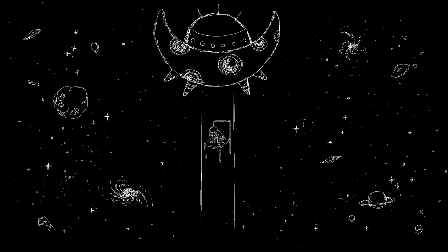 Escape from an alien spaceship in a surreal, dreamlike journey.
