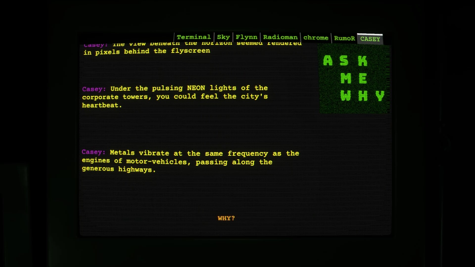 Dive deep inside the long-lost communication network and explore the wideband. There are weird people to talk and various mysteries to be solved inside your terminal. Hear static whispers. Decipher frequencies. Piece together the deeper story inside the noise.